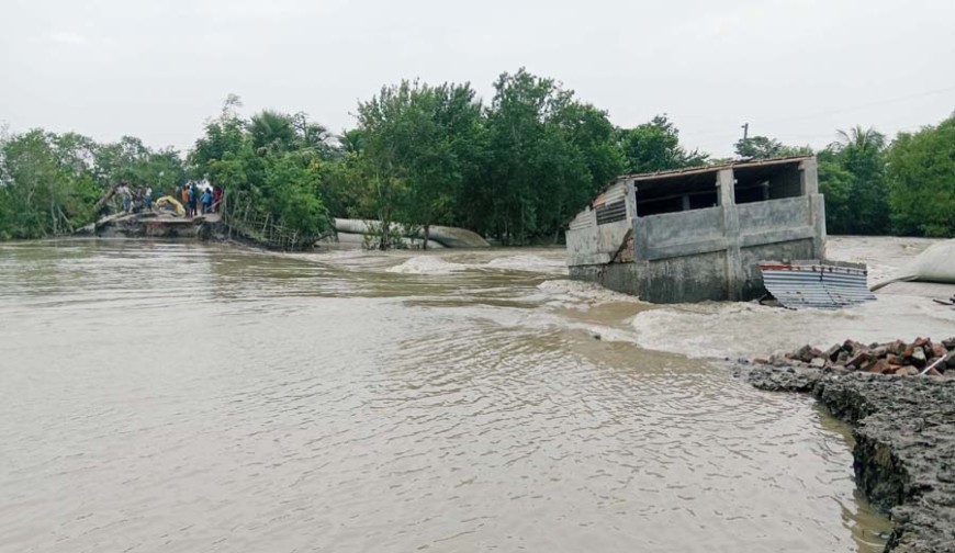 মঙ্গলবার রাত সাড়ে ১১ টার ঢাকী নদীর জোয়ারের পানির চাপে দাকোপের ৩০ নম্বর পোল্ডারের অধীন তিলডাঙ্গা ইউনিয়নের বটবুনিয়া হরিসভা মন্দির এলাকার আনুমানিক ২শ’ ফুট ওয়াপদা বেড়ীবাঁধ ভেঙে বিস্তীর্ণ এলাকা প্লাবিত হয়েছে। এ ঘটনায় তিলডাঙ্গা ইউনিয়নের উত্তর কামিনীবাসিয়া, বটবুনিয়া, নিশানখালী ও আড়াখালী গ্রাম পানিতে তলিয়ে যায়। ফলে ভেসে গেছে ঘরবাড়ী, মৎস্য ঘের, পুকুর ও ৩ হাজার বিঘা জমির আমন ফসলের ক্ষেত। বুধবারের মধ্যে বাঁধ আটকাতে না পারলে দক্ষিন কামিনীবাসিয়া, ভাদলা বুনিয়া, মশামারী, গড়খালী ও কাকড়া বুনিয়াসহ প্রায় গোটা তিলডাঙ্গা ইউনিয়ন প্লাবিত হওয়ার আশংকা প্রকাশ করে সংশ্লিষ্ট ইউপি চেয়ারম্যান জালাল উদ্দিন গাজী বলেন, ভোর বেলা পানি উন্নয়ন বোর্ড আরো বেশী তৎপর হয়ে ২ টা বালির টিউব দিয়ে চাপান দিলে বাঁধটি আটকানো সম্ভব হত। কিন্তু তারা সেটি করতে ব্যর্থ হয়েছে। ঘটনাস্থলে গিয়ে পানি উন্নয়ন বোর্ডের মাঠ পর্যায়ের কর্মকর্তাদের দেখা যায়, তবে উচ্চ পর্যায়ের কোন কর্মকর্তার দেখা মেলেনি। এ ছাড়া দাকোপ উপজেলা নির্বাহী অফিসার আসমত হোসেন, থানার অফিসার ইনচার্জ সিরাজুল ইসলাম এবং স্থানীয় সেনা ক্যাম্প কমান্ডার ভাঙন এলাকায় উপস্থিত ছিলেন। নির্বাহী অফিসার আসমত হোসেন বলেন, আশা করছি রাতের মধ্যে বাঁধ আটকাতে পারবো। বালির টিউবসহ অন্যান্য সামগ্রী প্রস্তুত রাখা আছে। পানি উন্নয়ন বোর্ড সকল উদ্যোগ নিয়েছেন এমন দাবি করে তিনি বলেন তাৎক্ষনিক উপজেলা প্রশাসনের পক্ষ থেকে আমরা ক্ষতিগ্রস্ত ৪০ পরিবারের মাঝে শুকনো খাবার চিড়া গুড় এবং রান্নার জন্য চাল, ডাল, তেলসহ অন্যান্য সামগ্রী বিতরণ করেছি। বিকাল নাগাদ ক্ষতিগ্রস্ত অন্যান্য পরিবার গুলোকে অনুরুপ সহযোগীতা করা হবে বলে তিনি জানিয়েছেন। এলাকাবাসীর অভিযোগ বেড়ীবাঁধের ওই অংশটি চরম ঝুঁকিপূর্ণ ছিল। কিন্তু পানি উন্নয়ন বোর্ড সময় মত কোন পদক্ষেপ না নেওয়ায় এমন ক্ষতি হল।