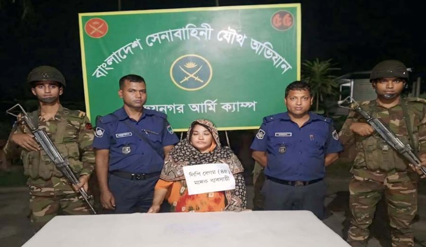 অভয়নগর (যশোর) প্রতিনিধি: যশোরের অভয়নগরে সেনাবাহিনী ও পুলিশের যৌথ অভিযানে মাদকদ্রব্যসহ লিপি বেগম (৪৪) নামে চিহ্নিত এক নারী মাদক কারবারীকে আটক করা হয়েছে। বৃহস্পতিবার (৯ অক্টোবর) ভোর রাতে উপজেলার বুইকারা গ্রামের আকুঞ্জিপাড়ায় অভিযান চালিয়ে ১০ পিস ইয়াবা ট্যাবলেট ও ১০ প্যাকেট ইয়াবা ট্যাবলেটের গুড়াসহ তাকে আটক করা হয়। আটক লিপি বেগম আকুঞ্জিপাড়ার মৃত হিরো মোল্ল্যার স্ত্রী। তার বিরুদ্ধে অভয়নগর থানায় মাদকদ্রব্য নিয়ন্ত্রণ আইনে একাধিক মামলা রয়েছে।