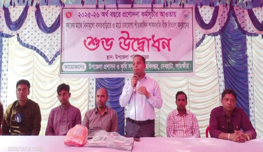 দেবহাটা (সাতক্ষীরা) প্রতিনিধি: দেবহাটায় উপজেলা প্রশাসন ও উপজেলা কৃষি অধিদপ্তরের আয়োজনে বুধবার দুপুর সাড়ে ১২টায় কৃষকদেরকে বিনামূল্যে সার ও বীজ প্রদান অনুষ্ঠান অনুষ্ঠিত হয়েছে। উপজেলা অফিসার্স ক্লাবের সামনে ২০২৫-২৬ অর্থবছরে প্রনোদনা কর্মসূচির আওতায় কৃষকদের মাঝে বিনামূল্যে বসতবাড়িতে ও মাঠে চাষযোগ্য শীতকালীন সবজি বীজ ও সার বিতরন অনুষ্ঠানে সভাপতিত্ব করেন দেবহাটা উপজেলা কৃষি অফিসার শওকত ওসমান। প্রধান অতিথি ছিলেন দেবহাটা উপজেলা নির্বাহী অফিসার মিলন সাহা। এসময় অন্যান্যের মধ্যে উপস্থিত ছিলেন ও বক্তব্য রাখেন উপজেলা কৃষি সম্প্রসারন কর্মকর্তা জয়দেব কুমার, দেবহাটা রিপোর্টার্স ক্লাবের সভাপতি আর.কে.বাপ্পা, দেবহাটা প্রেসক্লাবের সভাপতি মীর খায়রুল আলম, রিপোর্টার্স ক্লাবের সাধারণ সম্পাদক মেহেদী হাসান কাজল প্রমুখ। সভায় উপজেলা কৃষি অধিদপ্তরের বিভিন্ন কর্মকর্তাবৃন্দ ও শতাধিক কৃষক কৃষাণী উপস্থিত ছিলেন।