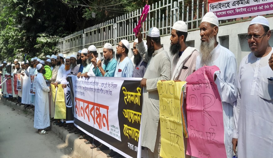 মাগুরা প্রতিনিধি : মাগুরায় পাঁচ দফা দাবি তুলে ধরে মানববন্ধন করেছে ইসলামী আন্দোলন বাংলাদেশ মাগুরা জেলা শাখা। বুধবার সকাল ১১ টায় শহরের চৌরঙ্গি মোড়ে মানববন্ধনে সংক্ষিপ্ত সমাবেশে বক্তব্য রাখেন ইসলামী আন্দোলন বাংলাদেশ মাগুরা শাখার সভাপতি মুফতি মোস্তফা কামাল, সহ- সভাপতি মাওলানা নাজিরুল ইসলাম, মাওলানা ওসমান গনি ও মাওলানা মশিউর রহমান প্রমূখ। সভায় অবিলম্বে জুলাই সনদের আইনি ভিত্তি, পিআর পদ্ধতিতে আগামী নির্বাচন, লেভেল প্লেয়িং ফিল্ড নিশ্চিতকরণ, গণহত্যার দৃশ্যমান বিচার ও ও ফ্যাসিবাদের বিচারের দাবী জানান বক্তারা। মানববন্ধনে মাগুরা জেলা ইসলামী আন্দোলনের বিভিন্ন ইউনিটের শতাধিক নেতাকর্মী অংশ নেন।