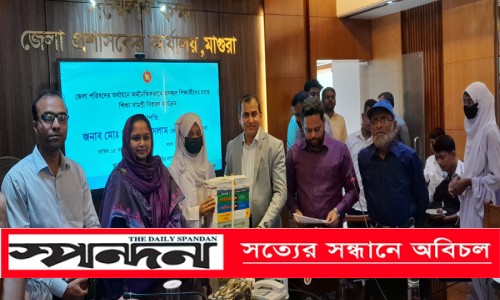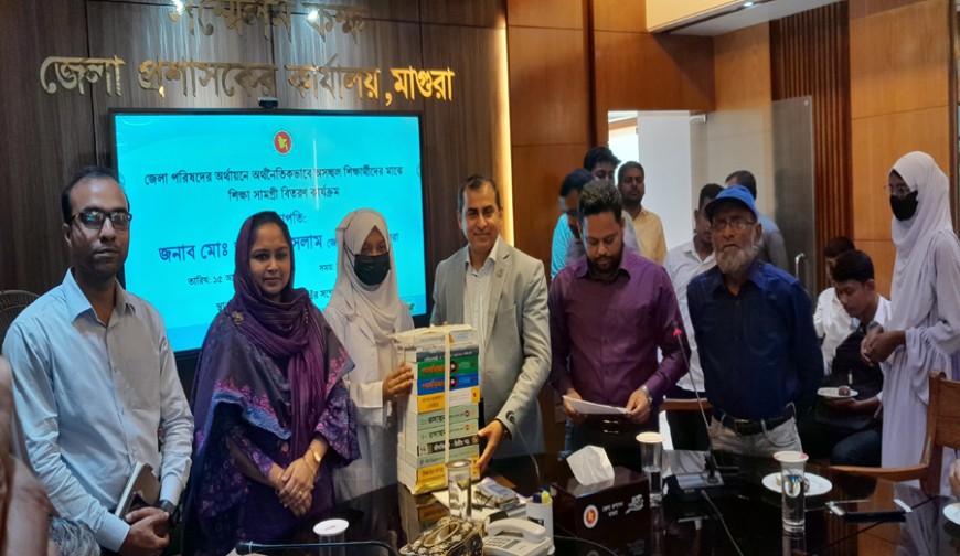 মাগুরা প্রতিনিধি : মাগুরায় বিনামূল্যে বই পেল ৫০ অসচ্ছল পরিবারের শিক্ষার্থীরা । বুধবার সকাল ১১ টায় মাগুরা জেলা প্রশাসক কক্ষে জেলা পরিষদের অর্থায়নে অর্থনৈতিকভাবে অসচ্ছল শিক্ষার্থীদের মাঝে শিক্ষা সামগ্রী বিতরণ অনুষ্ঠানের আয়োজন করা হয়। অনুষ্ঠানে জেলা প্রশাসক মোঃ অহিদুল ইসলাম প্রধান অতিথি থেকে সদরের ৫ টি কলেজের শিক্ষার্থীদের মাঝে বিনামূল্যে বই বিতরণ করেন। এ সময় বক্তব্য রাখেন জেলা পরিষদের নির্বাহী কর্মকর্তা হাসিনা মমতাজ, সদর উপজেলার নির্বাহী অফিসার মোঃ হাসিবুল হাসান, মাগুরা প্রেসক্লাবের সভাপতি অধ্যাপক সাইদুর রহমান , নাজির আহমেদ ডিগ্রী কলেজের অধ্যক্ষ খন্দকার মোহাম্মদ হায়াত আলী ও ও শিক্ষার্থী নয়ন সাহা প্রমূখ।