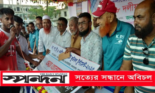 কলারোয়া প্রতিনিধি: কলারোয়ায় কপাই ফুটবল টুর্নামেন্টে প্রথম দল হিসেবে ফাইনালে উন্নীত হলো ধুলিহর সুপারস্টার যুব সংঘ, সাতক্ষীরা। রোববার (১৯ অক্টোবর) কলারোয়া ফুটবল ময়দানে অনুষ্ঠিত প্রথম সেমিফাইনালে ২-১ গোলে কুশলিয়া কসমস ফুটবল একাদশ, কালিগঞ্জকে হারিয়ে এ ফাইনাল নিশ্চিত করে ধুলিহর সুপারস্টার যুব সংঘ। বিপুল দর্শক পরিপূর্ণ এ খেলায় অনুপম ক্রীড়াশৈলী প্রদর্শন করে ধুলিহর সুপারস্টার শেষ মুহূর্ত পর্যন্ত একচেটিয়া প্রাধান্য বজায় রেখে ২-০ গোলে এগিয়ে ছিলো। শেষ বাঁশি বাজার মিনিট তিনেক আগে পেনাল্টিতে সুমনের দেওয়া গোলে কসমস ফুটবল একাদশ ব্যবধান কমিয়ে আনলে খেলাটি ২-১ গোলে শেষ হয়। এর আগে ধুলিহর সুপারস্টারের পক্ষে প্রথমার্ধ্বে হাসানুর প্রথম গোল ও দ্বিতীয়ার্ধ্বে আতিক দ্বিতীয় গোলটি করেন। খেলায় সেরা খেলোয়াড় বিবেচিত হন ধুলিহর সুপারস্টারের আতিক। খেলাটি পরিচালনা করেন মাসউদ পারভেজ মিলন। টুর্নামেন্ট পরিচালনা কমিটির সদস্য সচিব তাহের মোল্লা জানান, কলারোয়া পাবলিক ইনস্টিটিউট (কপাই) আয়োজিত এ টুর্নামেন্টের দ্বিতীয় সেমিফাইনালে আগামী মঙ্গলবার (২১ অক্টোবর) শার্শা রুস্তম আলি ফুটবল একাদশ ও শ্যামনগর ফুটবল একাডেমি পরস্পরের মুখোমুখি হবে।