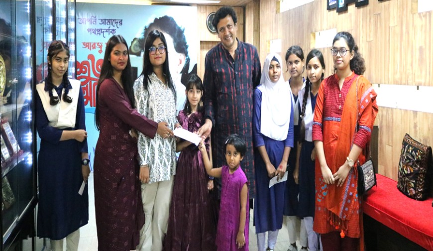 প্রেসবিজ্ঞপ্তি: টাকার অংকে আট হাজার পাঁচশ’ খুব বেশি নয়! কিন্তু এর এক-একটি টাকার সাথে মিশে আছে শিশু-শিক্ষার্থীদের আবেগ, ভালবাসা, স্বপ্ন। এর প্রতিটি টাকা এই শিশুরা জমিয়েছে তাদের টিফিনের টাকা থেকে। তাদের সেই অর্থ আবেগ-ভালবাসার খামে ভরে তুলে দিয়েছে চারুপীঠ ইনস্টিটিটের শৈল্পিক ভবন নির্মাণ প্রকল্পে।
