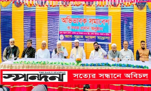 ফুলতলা (খুলনা) প্রতিনিধি: ফুলতলার আস-সুন্নাহ মডেল মাদ্রাসার এক অভিভাবক সমাবেশ ও ছবক প্রদান অনুষ্ঠান শনিবার সকালে মাদ্রাসা চত্বরে অনুষ্ঠিত হয়। মাদ্রাসার প্রিন্সিপাল এবং ফুলতলা বাজার আহমাদিয়া কেন্দ্রীয় জামে মসজিদের ইমাম হাফেজ মাওলানা মুফতি আব্দুল্লাহ আল মামুনের সভাপতিত্বে ও হাফেজ মাহদি হাসানের পরিচালনায় অনুষ্ঠানে প্রধান অতিথি ছিলেন ফুলতলা উপজেলা বিএনপি’র আহবায়ক ও ইউপি চেয়ারম্যান শেখ আবুল বাশার। বিশেষ অতিথি ছিলেন শিরোমনি হাফেজিয়া মাদ্রাসার প্রিন্সিপাল হাফেজ ইবরাহীম, নওয়াপাড়া পীরবাড়ি মাদ্রাসার সিনিয়র শিক্ষক মাও. হাসানুর রহমান, ফুলতলা আহমাদিয়া ফাজিল মাদ্রাসার প্রভাষক মাওঃ মাহবুবুর রহমান, সরদার আবিদ হোসেন (মুক্তি)। এ সময় প্রতিষ্ঠানের শিক্ষকবৃন্দ, অভিভাবক ও স্থানীয় গণ্যমান্য ব্যক্তিরা উপস্থিত ছিলেন।