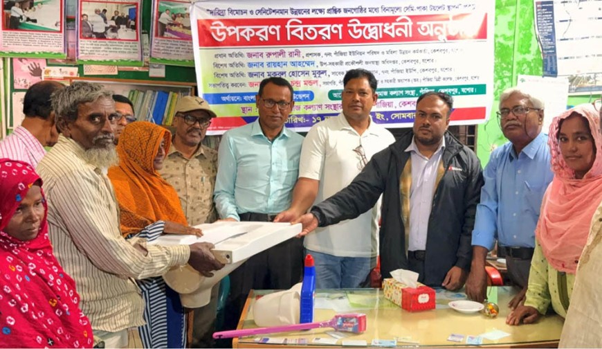 কেশবপুর প্রতিনিধি : কেশবপুরের জলাবদ্ধ অঞ্চলের পাঁজিয়া ইউনিয়নের বেলকাটি গ্রামের প্রান্তিক অসহায় পরিবারের মাঝে সেমিপাকা পয়ঃনিষ্কাশনের (টয়লেট) উপকরণ বিতরণ করা হয়েছে। সোমবার দুপুরে উপজেলার পাঁজিয়া সমাজকল্যাণ সংস্থার উদ্যোগে ও বাংলাদেশ এনজিও ফাউন্ডেশনের অর্থায়নে সংস্থার কার্যালয়ে সাতটি পরিবারের মাঝে টয়লেট স্থাপনের ওই উপকরণ বিতরণ করা হয়।