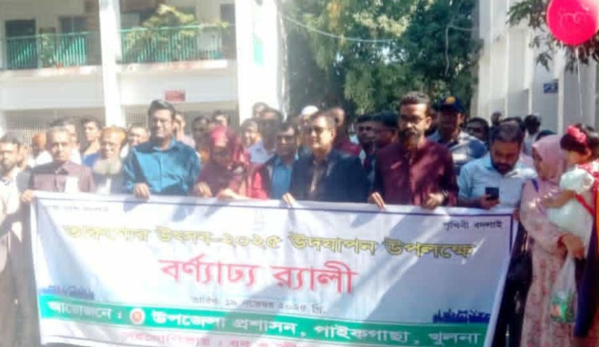 পাইকগাছা (খুলনা) প্রতিনিধি: পাইকগাছায় তারুণ্যের উৎসব উদযাপন উপলক্ষে বর্ণাঢ্য র্যালি ও আলোচনা সভা অনুষ্ঠিত হয়েছে। বুধবার সকালে উপজেলা প্রশাসনের আয়োজনে পরিষদ চত্বর থেকে একটি বর্ণাঢ্য র্যালি বের হয়ে প্রধান সড়ক প্রদক্ষিণ শেষে উপজেলা পরিষদ মিলনায়তনে আলোচনা সভা অনুষ্ঠিত হয়।