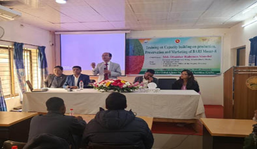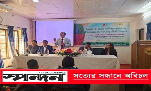ঝিনাইদহ প্রতিনিধি: ঝিনাইদহে বারি মসুর-৮ উৎপাদন, সংরক্ষণ ও বিপণনে কৃষকের সক্ষমতা বৃদ্ধি বিষয়ক প্রশিক্ষণ অনুষ্ঠিত হয়েছে। রোববার সকালে জেলা কৃষি সম্প্রসারণ অধিদপ্তরের উপ-পরিচালকের কার্যালয়ে এ আয়োজন করা হয়। এতে সহযোগিতা করেন গেইন। অনুষ্ঠানে জেলা কৃষি সম্প্রসারণ অধিদপ্তরের উপ-পরিচালক কৃষিবিদ মোঃ কামরুজ্জামান এর সভাপতিত্বে প্রধান অতিথি হিসেবে উপস্থিত ছিলেন কৃষি সম্প্রসারণ অধিদপ্তর (খামারবাড়ি) সরেজমিন উইং পরিচালক কৃষিবিদ মোঃ ওবায়দুর রহমান মন্ডল। বিশেষ অতিথি ছিলেন কৃষি সম্প্রসারণ অধিদপ্তর (খামারবাড়ি) মনিটরিং উপপরিচালক ড. মোঃ আবু জাফর আল মুনসুর প্রমুখ।