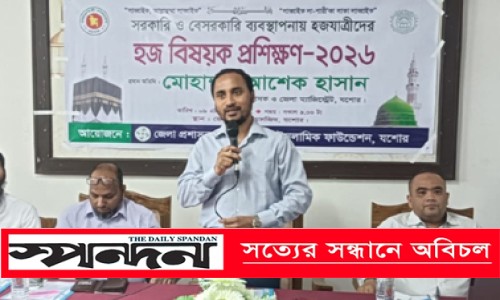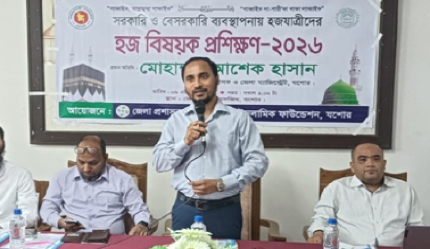 নিজস্ব প্রতিবেদক : ইসলামিক ফাউন্ডেশন যশোর জেলা কার্যালয়ের উদ্যোগে বৃহস্পতিবার জেলা মডেল মসজিদ ও ইসলামিক সাংস্কৃতিক কেন্দ্রে হজ বিষয়ক প্রশিক্ষণ কর্মসূচি অনুষ্ঠিত হয়। অংশ নেন জেলার বিভিন্ন উপজেলা থেকে আগত প্রায় ১ হাজার হজযাত্রী, ইমাম, খতিব ও সংশ্লিষ্ট ব্যক্তিবর্গ। তাদের হজের সঠিক নিয়ম-কানুন, স্বাস্থ্য সচেতনতা এবং সার্বিক প্রস্তুতি সম্পর্কে হজযাত্রীদের অবহিত করতে এ প্রশিক্ষণের আয়োজন করে । প্রধান অতিথির বক্তব্য রাখেন যশোরের জেলা প্রশাসক মোহাম্মদ আশেক হাসান। তিনি বলেন, “হজ শুধু একটি ধর্মীয় ইবাদত নয়, এটি একটি সার্বিক শৃঙ্খলার প্রতিফলন। হজ পালনের জন্য প্রয়োজন সঠিক জ্ঞান, শারীরিক সক্ষমতা এবং মানসিক প্রস্তুতি । এই প্রশিক্ষণ সেই প্রস্তুতির একটি গুরুত্বপূর্ণ অংশ। সরকার হজযাত্রীদের সর্বোচ্চ সেবা নিশ্চিত করতে বদ্ধপরিকর। প্রশাসনের পক্ষ থেকে হজ ব্যবস্থাপনায় যেকোনো ধরনের সহায়তা প্রদান করা হবে বলে তিনি আশ্বাস দেন। একই সঙ্গে তিনি হজযাত্রীদের নিয়ম-শৃঙ্খলা মেনে চলা, সময়ানুবর্তিতা বজায় রাখা এবং সৌদি আরবের আইন-কানুন কঠোরভাবে অনুসরণ করার আহ্বান জানান। ইসলামিক ফাউন্ডেশন যশোরের উপপরিচালক বিল্লাল বিন কাশেমের সভাপতিত্বে অনুষ্ঠানে বিশেষ অতিথির বক্তব্য রাখেন অতিরিক্ত জেলা প্রশাসক (শিক্ষা ও আইসিটি) খান মোহাম্মদ মাসুম বিল্লাহ। এসময় বক্তব্য রাখেন আমিনিয়া আলিয়া মাদ্রাসার অধ্যক্ষ সাখাওয়াত হোসেন, সিভিল সার্জনের কার্যালয়ের মেডিকেল অফিসার ডা. মোঃ আমিরুজ্জামান প্রমুখ। প্রশিক্ষণ কর্মসূচিতে হজের বিভিন্ন ধাপ চিত্র ও ভিডিও প্রেজেন্টেশনের মাধ্যমে উপস্থাপন করা হয়, যাতে অংশগ্রহণকারীরা সহজেই বিষয়গুলো বুঝতে পারেন। প্রশিক্ষকরা হাতে-কলমে হজের বিভিন্ন অনুশীলন দেখান এবং অংশগ্রহণকারীদের প্রশ্নের উত্তর দেন। এছাড়া হজ ব্যবস্থাপনার বিভিন্ন দিক যেমন ফ্লাইট সময়সূচি, মক্কা ও মদিনায় অবস্থান, পরিবহন ব্যবস্থা, গাইডলাইন এবং জরুরি পরিস্থিতিতে করণীয় বিষয়েও বিস্তারিত আলোচনা করা হয়। অংশগ্রহণকারীদের মধ্যে হজ গাইড বই ও প্রয়োজনীয় তথ্যপত্র বিতরণ করা হয়।