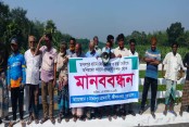 জীবননগরে ব্রিজের কাজে অনিয়মের অভিযোগে গ্রামবাসীর মানববন্ধন