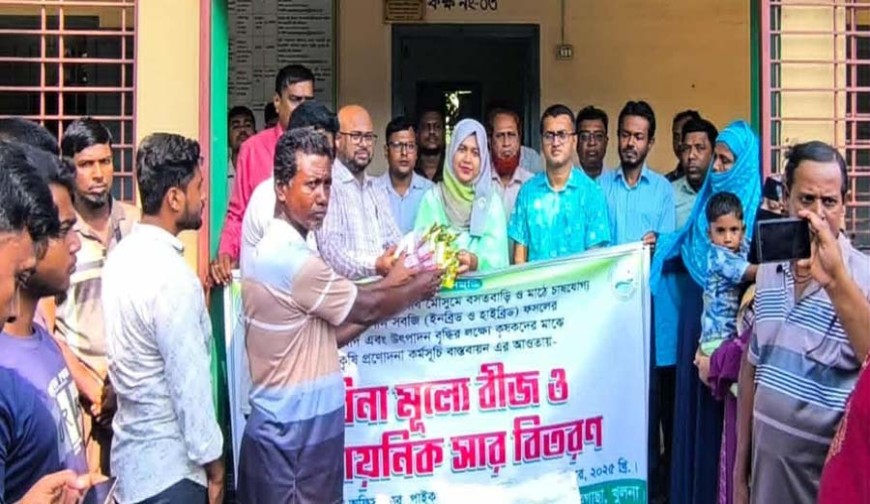 পাইকগাছা (খুলনা) প্রতিনিধি: পাইকগাছায় কৃষকদের মাঝে বিনামূল্যে বীজ ও রাসায়নিক সার বিতরণ করা হয়েছ। ২০২৫-২৬ অর্থবছরের রবি মৌসুমে বসতবাড়ি ও মাঠে চাষযোগ্য শীতকালীন সবজি ফসলের আবাদ ও উৎপাদন বৃদ্ধির লক্ষ্যে উপজেলার কৃষকদের মাঝে বিনামূল্যে বীজ ও রাসায়নিক সার বিতরণ করা হয়েছে।