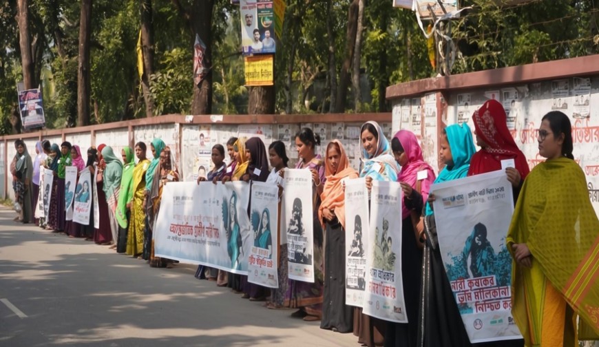 কালিগঞ্জ (সাতক্ষীরা) প্রতিনিধি: আন্তর্জাতিক গ্রামীণ নারী দিবস উপলক্ষে দেশের কৃষি ও অর্থনীতিতে গ্রামীণ নারী কৃষকের অবদানকে তুলে ধরতে এবং তাদের অধিকার নিশ্চিত করার দাবিতে সাতক্ষীরার কালিগঞ্জে মানববন্ধন কর্মসূচি পালিত হয়েছে।