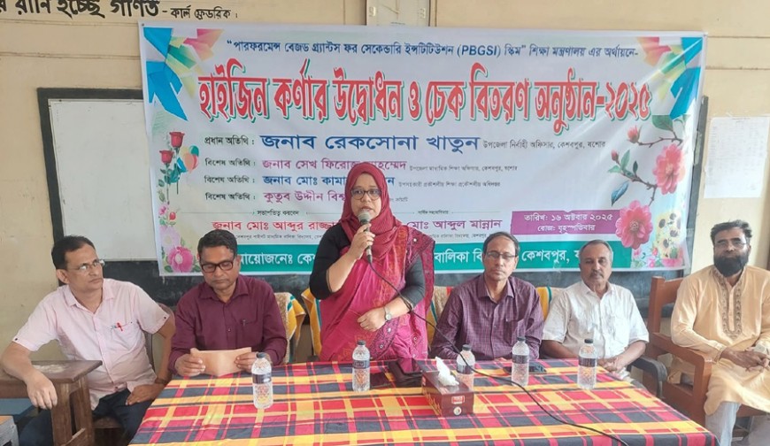 কেশবপুর প্রতিনিধি : কেশবপুর পাইলট মাধ্যমিক বালিকা বিদ্যালয়ে হাইজিন কর্ণার উদ্বোধন ও চেক বিতরণ-২০২৫ অনুষ্ঠিত হয়েছে। পারফরমেন্স বেজড গ্রান্টস ফর সেকেন্ডারি ইন্সটিটিউশন স্কিম” শিক্ষা মন্ত্রণালয় এর অর্থায়নে কেশবপুর পাইলট মাধ্যমিক বালিকা বিদ্যালয়ে “হাইজিন কর্ণার উদ্বোধন ও চেক বিতরণ করা হয়। উপজেলা বিএনপির সভাপতি অধ্যাপক আব্দুর রাজ্জাকের সভাপতিতে অনুষ্ঠানে প্রধান অতিথি ছিলেন কেশবপুর উপজেলার সম্মানিত উপজেলা নির্বাহী অফিসার রেকসোনা খাতুন। বিশেষ অতিথি কেশবপুর উপজেলার সম্মানিত মাধ্যমিক শিক্ষা অফিসার শেখ ফিরোজ আহম্মেদ, উপসহকারী প্রকৌশলীয় শিক্ষা অধিদপ্তরের মোঃ কামাল হোসেন, ম্যানেজিং কমিটির সদস্য পৌর বিএনপির সহসভাপতি সাবেক পৌর কাউন্সিলর কুতুব উদ্দীন বিশ্বাস, কেশবপুর পাইলট মাধ্যমিক বালিকা বিদ্যালয়ের সম্মানিত প্রধান শিক্ষক মোঃ আব্দুল মান্নান। এ সময় উপস্থিত ছিলেন সহকারী প্রধান শিক্ষক জনাব প্রবীর কুমার দত্তসহ অন্যান্য শিক্ষক -কর্মচারীবৃন্দ ও শিক্ষার্থীরা।