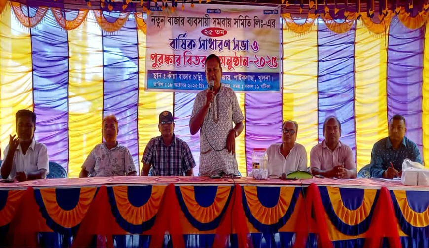 পাইকগাছা (খুলনা) প্রতিনিধি : পাইকগাছায় নতুন বাজার ব্যবসায়ী সমবায় সমিতি লিমিটেডের বার্ষিক সাধারণ সভা অনুষ্ঠিত হয়েছে। শনিবার সকাল ১১ টায় নতুন বাজার চত্বরে অনুষ্ঠিত সাধারণ সভায় সভাপতিত্ব করেন সমবায় সমিতির সভাপতি অশোক কুমার ঘোষ। সমিতির সম্পাদক প্রভাষক আবু ছালেহ মোঃ ইকবাল এর পরিচালনায় বক্তব্য রাখেন সমিতির সাবেক সম্পাদক সাংবাদিক ও কলামিস্ট প্রকাশ ঘোষ বিধান, অধ্যাপক শামিম আজাদ লিটু, সহ-সভাপতি জগন্নাথ দেবনাথ, কোষাধ্যক্ষ নারায়ণ দেবনাথ, সাবেক ব্যাংকার প্রজিৎ রায়, শিক্ষক বিমল ঘোষ, নাসির উদ্দিন, শিক্ষক শিব শংকর রায়, আবুল কালাম, শংকর দেবনাথ, সামসুজ্জামান, বাবুল সরদার, মিজানুর রহমান, বিল্লাল বিশ্বাস, সনজিত ঘোষ, সুভাষ দেবনাথ, শংকর মল্লিক, ইমরান হোসেন প্রমুখ।
