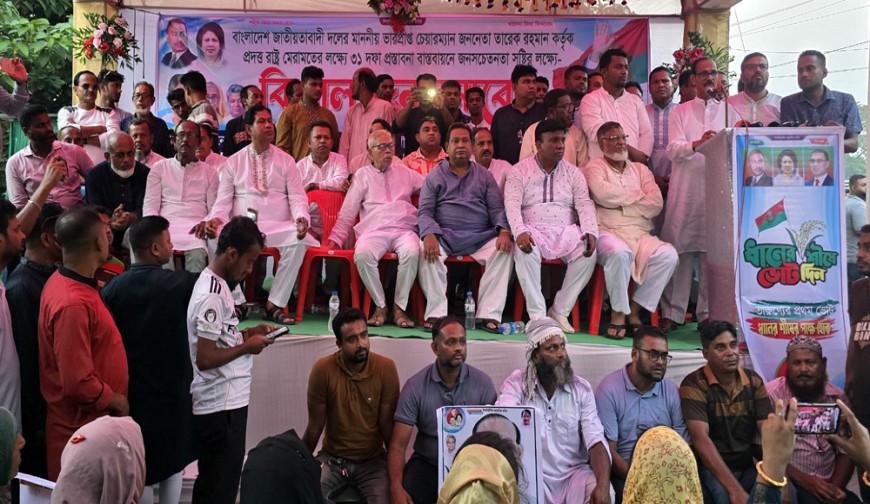 অভয়নগর (যশোর) প্রতিনিধি : আসন্ন ত্রয়োদশ জাতীয় সংসদ নির্বাচনকে সামনে রেখে বিএনপির ভারপ্রাপ্ত চেয়ারম্যান তারেক রহমান ঘোষিত ৩১ দফা বাস্তবায়নের লক্ষ্যে যশোরের বাঘারপাড়ায় অনুষ্ঠিত হয়েছে এক বিশাল জনসমাবেশ। শুক্রবার বিকেলে বাঘারপাড়া পৌর বিএনপি ও অঙ্গ সহযোগী সংগঠনের আয়োজনে বাঘারপাড়া বাজারের চৌরাস্তা মোড়ে এ সমাবেশ অনুষ্ঠিত হয়। এর আগে দুপুরে ফারাজী মতিয়ার রহমানের নেতৃত্বে শতাধিক গাড়ি ও হাজার হাজার মোটরসাইকেল নিয়ে নেতাকর্মীরা সমাবেশস্থলে যোগ দেন।