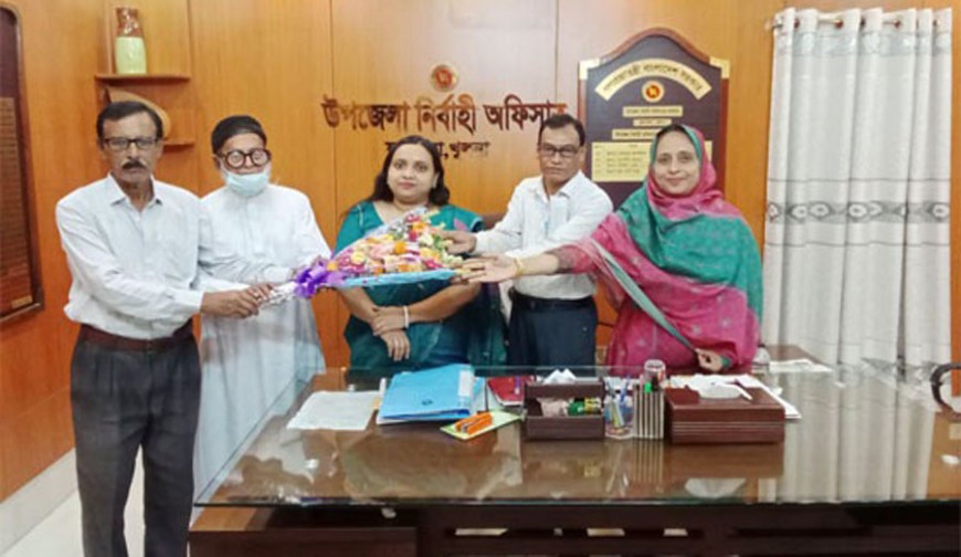ফুলতলা (খুলনা) প্রতিনিধি: নবাগত ফুলতলা উপজেলা নির্বাহী অফিসার সুচি রানী সাহাকে বুধবার বিকালে ফুলেল শুভেচ্ছা জানান উপজেলা দুর্নীতি দমন প্রতিরোধ কমিটির নেতৃবৃন্দ। এ সময় উপস্থিত ছিলেন দুর্নীতি প্রতিরোধ কমিটির সভাপতি আতিয়ার রহমান আকুঞ্জী, সাধারণ সম্পাদক অধ্যাপক সুব্রত কুমার বিশ্বাস, সদস্য সাংবাদিক শেখ মনিরুজ্জামান ও শিক্ষক সাবিনা ইয়াসমিন।