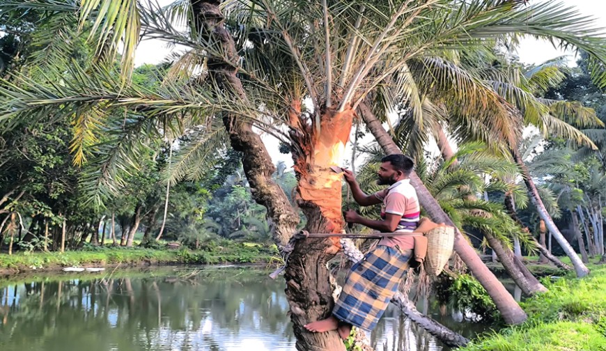 সোমবার সকালে সরেজমিনে দেখা যায়, উপজেলার বিভিন্ন গ্রামে চলছে খেজুরগাছের মাথা পরিষ্কারের কাজ। রাস্তার ধারে কিংবা জমির আইলে সারি সারি খেজুরগাছ। গাছিদের দ্রুত পদচারণা-এক গাছ থেকে আরেক গাছে। ধারালো দা-এর টুক শব্দে ভোরের বাতাসে তৈরি হচ্ছে শীতের আগমনী ছন্দ। নিপুণ হাতে গাছের মাথা পরিষ্কার করে দুই সপ্তাহ বিশ্রাম দিতে হবে, এরপরই শুরু হবে রস সংগ্রহ। খেজুর রসকে ঘিরে গ্রামবাংলায় তৈরি হয় শীতের আলাদা এক আবহ। শীত যত বাড়ে, রসের মাধুর্যও তত গভীর হয়। ভোরের গরম রস, সন্ধ্যার রস, আর ঐতিহ্যবাহী পাটালি গুড় শীতের স্বাদকে পূর্ণ করে তোলে এগুলো। পিঠা আর পায়েস তৈরিতে খেজুরের গুড় আবহমান কাল ধরে গ্রামীণ সংস্কৃতির অবিচ্ছেদ্য অংশ।