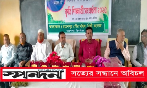 মহেশপুর পৌর মহিলা ডিগ্রী কলেজের অধ্যক্ষ মমিনুল হকের সভাপতিত্বে ও প্রভাষক মহিদুল ইসলামের সঞ্চালনায় অনুষ্ঠিত সংবর্ধনা অনুষ্ঠানে প্রধান অতিথি ছিলেন মহেশপুর পৌর মহিলা ডিগ্রী কলেজের সভাপতি আলমগীর কবির।