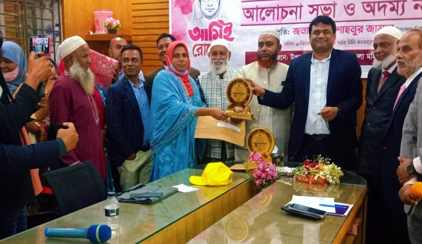 আলোচনা শেষে ৫ জন অদম্য নারীর মাঝে পুরস্কার বিতরণ করা হয়। তারা হলেন, অর্থনৈতিক ভাবে সাফল্য অর্জনকারী নারী হিসেবে মহম্মদপুর ইউনিয়নের রুইজানি গ্রামের বিলতা রানী বিশ্বাস , শিক্ষা ও চাকুরী ক্ষেত্রে সাফল্য অর্জনকারী নারী বাবুখালী ইউনিয়নের রায়পুর গ্রামের মোছাঃ লিপি খাতুন,সমাজ উন্নয়নে অসামান্য ভুমিকা রাখায় মহম্মদপুর ইউনিয়নের গোপালনগর গ্রামের সুলতানা রউফুন্নাহার , নির্যাতনের দুঃস্বপ্ন মুছে জীবন সংগ্রামে জয়ী নারী বিনোদপুর ইউনিয়নের বেথুলিয়া গ্রামের মোছাঃ রিক্তা পারভীন ও সফল জননী নারী বিনোদপুর ইউনিয়নের চৌবাড়ীয়া গ্রামের মোছাঃ আঞ্জুমান আরা বেগম। পাঁচ ক্যাটাগরিতে পাঁচ জয়ীতাকে সংবর্ধনা দেওয়ায় তাদের চোঁখে মুখেঁ আনন্দের ঝিলিক লক্ষ্যকরা যায়।