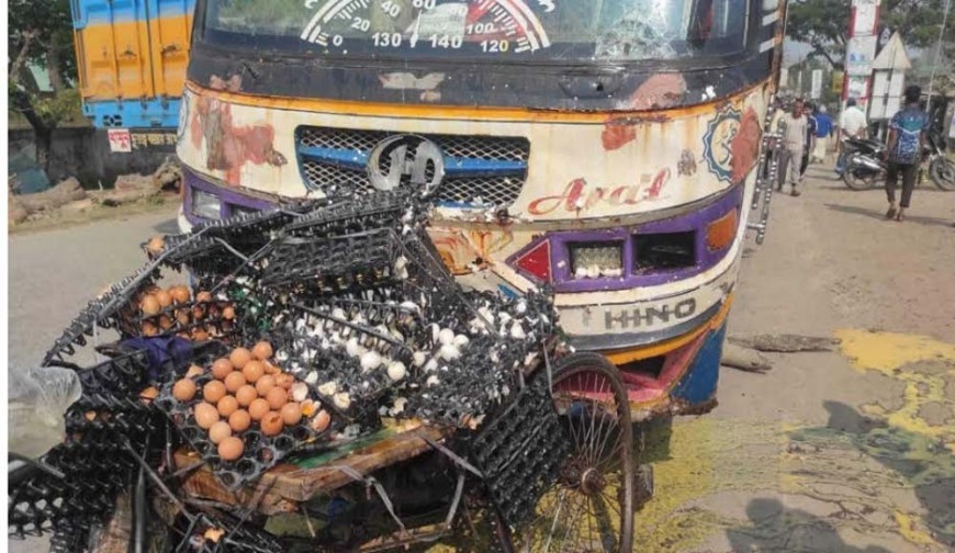 প্রত্যক্ষদর্শীরা জানান, দুর্ঘটনার পর বাসটি দ্রুত পালিয়ে যাওয়ার চেষ্টা করে। এ সময় সামনে থাকা ডিমবোঝাই একটি ভ্যানকে ধাক্কা দিয়ে দ্বিগরাজ বাজার থেকে পৌর ট্রাক টার্মিনাল পর্যন্ত টেনে নিয়ে যায়। এতে ভ্যানচালক সামান্য আহত হন, তবে বাসের যাত্রীদের বড় কোনো ক্ষয়ক্ষতি হয়নি।