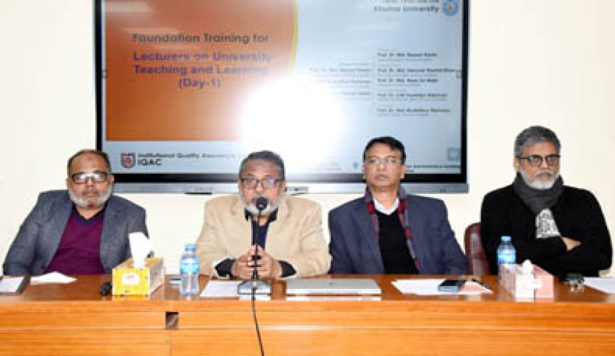 খুলনা প্রতিনিধি: খুলনা বিশ্ববিদ্যালয়ে প্রভাষক পদে যোগদানকারী নবীন শিক্ষকদের ৫ দিনব্যাপী প্রশিক্ষণ কর্মসূচি উদ্বোধন করা হয়েছে। রোববার দুপুরে বিশ্ববিদ্যালয়ের ইনস্টিটিউশনাল কোয়ালিটি অ্যাসুরেন্স সেল (আইকিউএসি) আয়োজিত এ প্রশিক্ষণ কর্মসূচির উদ্বোধন করেন প্রধান অতিথি উপাচার্য প্রফেসর ড. মোঃ রেজাউল করিম। উদ্বোধনী অনুষ্ঠানে বিশেষ অতিথি হিসেবে বক্তব্য রাখেন উপ-উপাচার্য প্রফেসর ড. মোঃ হারুনর রশীদ খান। বিশেষ অতিথির বক্তব্য রাখেন ট্রেজারার প্রফেসর ড. মোঃ নূরুন্নবী। আইকিউএসির পরিচালক প্রফেসর ড. মোঃ মোস্তাফিজুর রহমানের সভাপতিত্বে স্বাগত বক্তব্য রাখেন করেন অতিরিক্ত পরিচালক প্রফেসর ড. এস এম তৌহিদুর রহমান। অনুষ্ঠান সঞ্চালনা করেন উপ-রেজিস্ট্রার মো. নূরুল ইসলাম সিদ্দিকী। উদ্বোধনী অনুষ্ঠানের পর রিসোর্স পারসন হিসেবে উপাচার্য ড. মোঃ রেজাউল করিম ‘উচ্চশিক্ষায় শিক্ষাদান ও শিক্ষণ প্রক্রিয়া সম্পর্কে পেশাগত জ্ঞান’ বিষয়ে আলোচনা করেন। এছাড়াও আউটকাম বেজড এডুকেশন এবং কারিকুলাম ডেভেলপমেন্ট বিষযে সেশন উপস্থাপন করেন আইকিউএসির পরিচালক প্রফেসর ড. মোঃ মোস্তাফিজুর রহমান ও অতিরিক্ত পরিচালক প্রফেসর ড. মোঃ ওয়াসিউল ইসলাম। পাঁচ দিনব্যাপী এ প্রশিক্ষণ কর্মসূচিতে খুলনা বিশ্ববিদ্যালয়ের বিভিন্ন ডিসিপ্লিনের সদ্য যোগদানকৃত প্রভাষকরা অংশগ্রহণ করছেন।