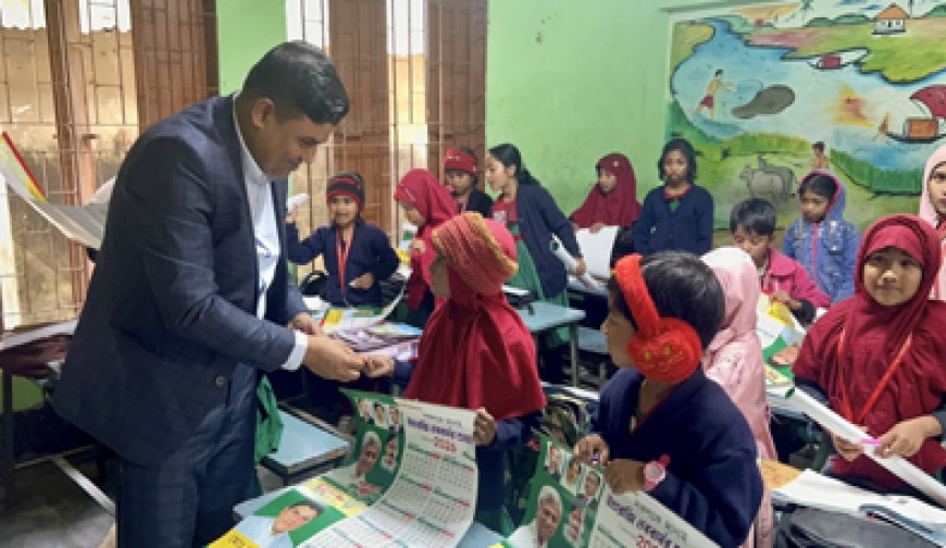 খাজুরা (যশোর) প্রতিনিধি: ঘটির কাটায় তখন সকাল ১০টা বেজে ১৪ মিনিট। প্রত্যাহিক সমাবেশ প্রায় শেষের দিকে। এমন সময় একটি প্রাইভেটকার নিয়ে বিদ্যালয় চত্বরে প্রবেশ করলেন তিনি। নিজের পরিচয় দিলেন। শুভেচ্ছা বিনিময় করলেন শিক্ষক-শিক্ষার্থীদের সঙ্গে। এরপর প্রত্যেক শিক্ষার্থীর হাতে তুলে দিলেন ক্যালেন্ডার (বর্ষপঞ্জি) আর চকলেট। তাও একটি নয়, দুটি করে চকলেট। আর শিক্ষকদের করালেন মিষ্টিমুখ। এমন চিত্র দেখা গেছে যশোরের বাঘারপাড়া উপজেলার সেকেন্দারপুর মাধ্যমিক বিদ্যালয়ে। নতুন বছরকে স্বাগত জানিয়ে ব্যতিক্রমী এ উদ্যোগ নিয়েছেন জেলা স্বেচ্ছাসেবক দলের যুগ্ম আহবায়ক ও চিত্রা মডেল কলেজের সভাপতি শামীম আকতার। তার দেয়া বর্ষপঞ্জি ও চকলেট উপহার পেয়ে শিক্ষার্থীরা যেমন খুশি হয়, তেমন আনন্দ-উল্লাসও করে। শামীমের এই ইতিবাচক কাজের কথা এখন সবার মুখে মুখে। কর্মসূচির প্রথমদিনে বন্দবিলা ইউনিয়নের ৭টি শিক্ষাপ্রতিষ্ঠানে প্রায় আড়াই হাজার শিক্ষার্থীর মাঝে উপহার বিতরণ করেন তিনি। চকলেট পেয়ে চিৎকার করে ওঠা শিশু শিক্ষার্থীদের একজন বন্দবিলা সরকারি প্রাথমিক বিদ্যালয়ের প্রথম শ্রেণির মিম খাতুন। সে বলে, ‘আজগে আমি দুখোন চক্কেট (চকলেট) পাইছি। কেন্ডার (ক্যালেন্ডার) পাইছি।’ মির্জাপুর আদর্শ মহিলা ডিগ্রি কলেজের অধ্যক্ষ তরিকুল ইসলাম বলেন, ‘এই ধরনের উদ্যোগ শিক্ষাব্যবস্থার একটি অংশ হয়ে উঠেছে। যা শিক্ষার্থীদের মধ্যে ভালোবাসা ও সহযোগিতার মনোভাব বাড়াতে সাহায্য করে।’ জেলা স্বেচ্ছাসেবক দলের যুগ্ম আহবায়ক ও চিত্রা মডেল কলেজের সভাপতি শামীম আকতার বলেন, ‘শিশুদের মুখে হাসি ফুটাতে এবং একে অন্যের প্রতি ভালোবাসা ও সহমর্মিতা ছড়িয়ে দিতে এমন উদ্যোগ হাতে নিয়েছি। এটি বৈষম্যহীনতার বার্তা দেয়। শিক্ষাপ্রতিষ্ঠানকে আনন্দময় জাগয়া হিসেবে গড়ে তোলে। যা তাদের পড়াশোনায় উৎসাহিত করে তোলে।’ বৃহস্পতিবার দিনভর চলা কর্মসূচিতে অন্যদের মধ্যে উপস্থিত ছিলেন, বন্দবিলা ইউনিয়ন বিএনপির সাধারণ সম্পাদক আজিজুর রহমান ও সিনিয়র সহসভাপতি আনোয়ার হোসেন ভূট্টো।
