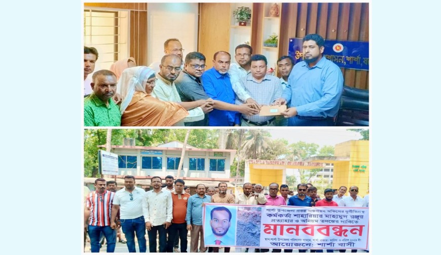 সোমবার (৬ এপ্রিল) দুপুরে জেলার শার্শা উপজেলা পরিষদ চত্বরে শার্শা উপজেলাবাসীর ব্যানারে এই মানববন্ধন অনুষ্ঠিত হয়। এসময় শার্শা উপজেলার ১১ টি ইউনিয়ন থেকে আগত ইউপি সদস্যরা ও বিভিন্ন শ্রেণিপেশার প্রায় ৫ সহস্রাধিক নারী-পুরুষ এ বিক্ষোভ মিছিল ও মানববন্ধনে অংশগ্রহণ করে।