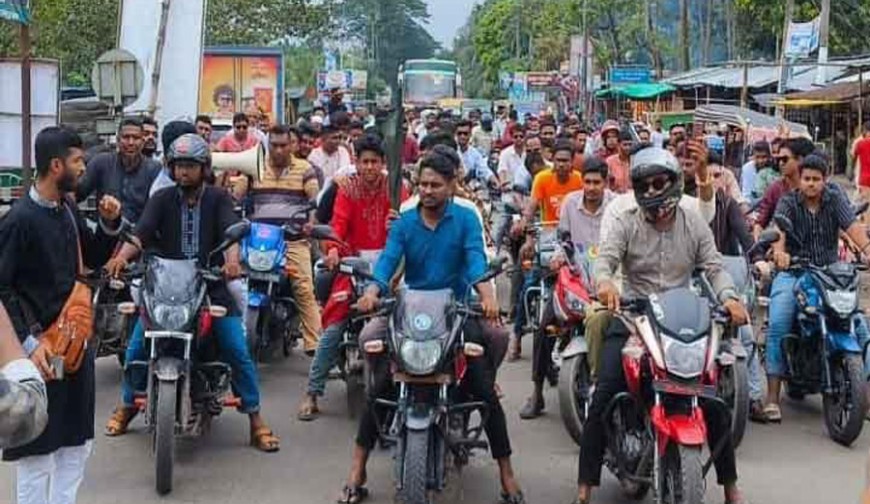 বাগেরহাট প্রতিনিধি: বাগেরহাটে জাতীয় নাগরিক পার্টির (এনসিপি) নেতাকর্মীরা দলটির নিবন্ধন প্রাপ্তি উপলক্ষে বিশাল মোটরসাইকেল শোভাযাত্রা করেছে। শনিবার দুপুরে দলটির বাগেরহাটে খানজাহান আলী মাজার মোড় থেকে শোভাযাত্রাটি শুরু হয়ে শহরের প্রধান প্রধান সড়ক প্রদক্ষিণ করে কে. আলী রোডে জেলা এনসিপি কার্যালয়ের সামনে এসে শেষ হয়। শোভাযাত্রার এনসিপির নেতাকর্মীরা ‘শাপলা আমাদের প্রতীক চাই’ শ্লোগান দেয়া হয়।
