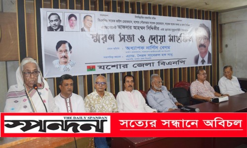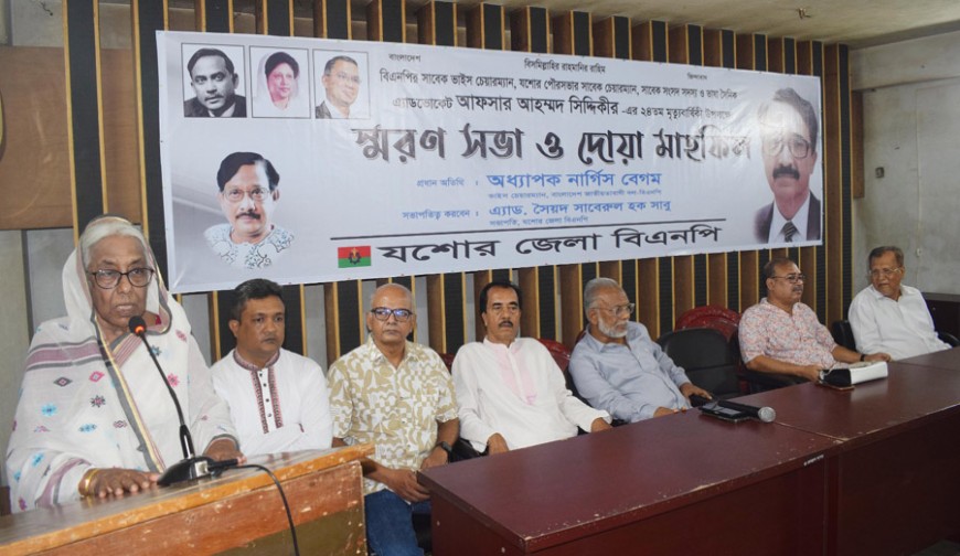 নিজস্ব প্রতিবেদক: ভাষা সৈনিক, বিএনপির সাবেক ভাইস চেয়ারম্যান ও সাবেক সংসদ সদস্য অ্যাড. আফসার আহমেদ সিদ্দিকীর স্মরণসভা ও দোয়া মাহফিল অনুষ্ঠিত হয়েছে। বরেণ্য এই রাজনীতিকের ২৪ তম মৃত্যুবার্ষিকী উপলক্ষে যশোর জেলা বিএনপির আয়োজনে রোববার বিকেলে প্রেসক্লাব যশোর মিলনায়তনে অনুষ্ঠিত স্মরণ সভায় প্রধান অতিথির বক্তব্য রাখেন বিএনপির ভাইস চেয়ারম্যান অধ্যাপক নার্গিস বেগম।