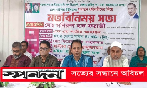 খাউলিয়া ইউনিয়ন বিএনপির সভাপতি মো. সেলিম হাওলাদারের সভাপতিত্বে অনুষ্ঠিত মতবিনিময় সভায় সভায় জেলা বিএনপির সাবেক সহসভাপতি খান মনিরুল ইসলাম, জেলা বিএনপি নেতা অহিদুল ইসলাম পল্টু অন্যান্যের মধ্যে বক্তব্য রাখেন।