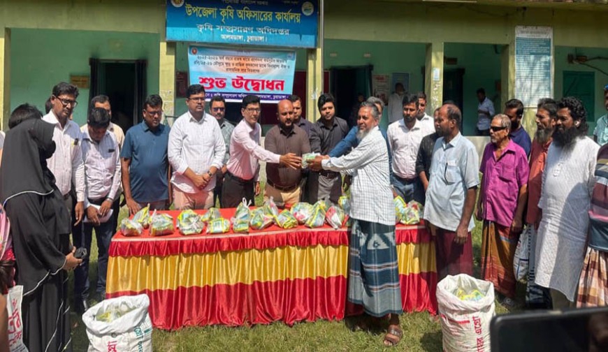 আলমডাঙ্গা অফিস: আলমডাঙ্গা উপজেলা কৃষি সম্প্রসারণ অধিদপ্তরের উদ্যোগে ২০২৫- ২০২৬ অর্থ বছরের রাজস্ব খাতে প্রণোদনা কর্মসূচির আওতায় ক্ষুদ্র ও প্রান্তিক কৃষকদের মাঝে বিনামূল্যে বীজও রাসায়নিক সার বিতরণের উদ্বোধন করা হয়েছে। বুধবার বেলা ১১ টার দিকে কৃষি অফিস চত্তরে আনুষ্ঠানিকভাবে শুভ উদ্বোধন করেন অনুষ্ঠানের প্রধান অতিথি উপজেলা নির্বাহী অফিসার শেখ মেহেদী ইসলাম। উপজেলা কৃষি অফিসার কৃষিবিদ মাসুদ হোসেন পলাশের সভাপতিত্বে বিশেষ অতিথি ছিলেন উপজেলা কৃষি সম্প্রসারণ অফিসার উদয় রহমান। উপসহকারী কৃষি কর্মকর্তা আহসানুল হক শাহিনের উপস্থাপনায় বক্তব্য রাখেন উপসহকারী কৃষি কর্মকর্তা আশরাফুল আলম, হামিদুল ইসলাম, আব্দুর রফিক, মিনারুল ইসলাম প্রমুখ। উপজেলার ১২৯০ কৃষকের মধ্যে পর্যায়ক্রমে সবজি বীজ ও রাসায়নিক সার বিতরণ করা হবে।