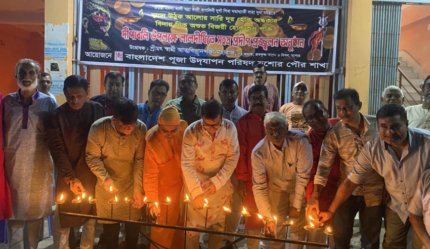 এদিকে, যশোর পৌর এলাকায় উৎসবমুখর পরিবেশে ব্যতিক্রমী মন্দির-মণ্ডপে পূজা প্রাঙ্গণমুখী দর্শনার্থী ও ভক্তবৃন্দের উপচে পড়া ভিড় ছিল লক্ষণীয়।