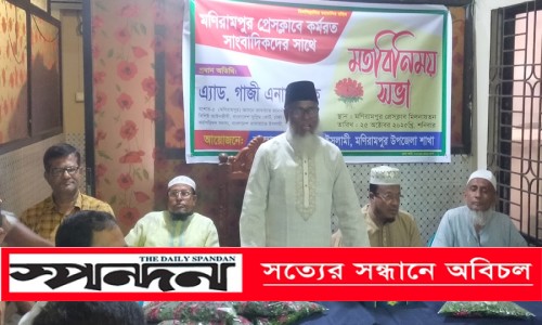 শনিবার সন্ধ্যায় মণিরামপুর প্রেসক্লাবের কর্মরত সাংবাদিকদের সাথে মতবিনিময়কালে তিনি এসব কথা বলেন। প্রেসক্লাবের সভাপতি এস এম মজনুর রহমানের সভাপতিত্বে ও সম্পাদক মোতাহার হোসেনের পরিচালনায় মতবিনিময় সভায় উপস্থিত ছিলেন সংগঠনের জেলা শুরা সদস্য মাওলানা মহিউল ইসলাম, উপজেলা শাখার আমীর সহকারী অধ্যাপক ফজলুল হক, সেক্রেটারি মাওলানা খলিলুর রহমান, সহকারী সেক্রেটারি সহকারী অধ্যাপক আহসান হাবিব লিটন, এইচ.এম শামীম, নায়েবে আমীর মাওলানা লিয়াকত হোসেন প্রমুখ। সংসদ সদস্য প্রার্থী অ্যাড.গাজী এনামুল হক আরো বলেন, উপজেলার ৫লাখ জনসাধারণের একমাত্র হাসপাতালটি সকলক্ষেত্রে অবস্থা নাজুক। তিনি নির্বাচিত হলে সবার স্বাস্থ্যসেবা নিশ্চিত করণে যাবতীয় কর্মপন্থা অবলম্বন করবেন। জনগণ নির্বিগ্নে বসবাস এবং চলাচলের ক্ষেত্রে নিরাপদ সমাজ ব্যবস্থা গড়ে তুলবেন।