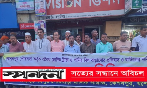 কেশবপুর প্রতিনিধি : কেশবপুর পৌরসভা কর্তৃক অবৈধ হোল্ডিং ট্যাক্স ও পানির বিল বাড়ানোর প্রতিবাদে ও বাতিলের দাবিতে সোমবার বিকালে মানববন্ধন কর্মসূচি পালিত হয়েছে।