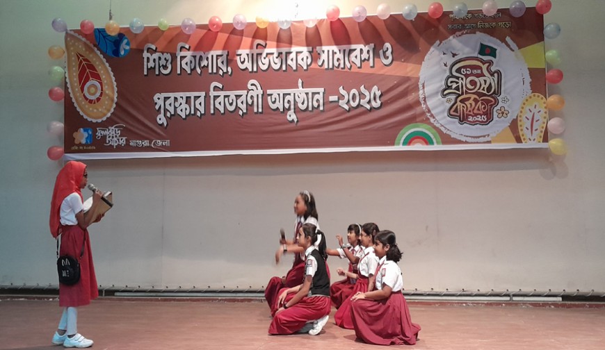 মাগুরা প্রতিনিধি: পৃথিবীকে গড়তে হলে সবার আগে নিজকে গড়ো এ সেøাগান নিয়ে মাগুরায় শিশু কিশোর অভিভাবক সমাবেশ ও পুরস্কার বিতরণ সম্পন্ন হয়েছে। শনিবার সকালে জেলা অডিটোরিয়ামে ফুলকুঁড়ি আসর মাগুরা শাখা এ অনুষ্ঠানের আয়োজন করে। অনুষ্ঠানে প্রধান অতিথি ছিলেন, কৃষিবিদ গ্রুপের ব্যবস্থাপনা পরিচালক ড.আলী আফজাল। অনুষ্ঠানের বক্তব্য রাখেন, বাংলাদেশ মেডিকেল অ্যাসোসিয়েশনের সভাপতি আলিমুজ্জামান, মাগুরা সরকারি কলেজের প্রাক্তন অধ্যক্ষ এমআর খান ও ফুলকুরি আসরের পরিচালক সাইফুল ইসলাম খান। অনুষ্ঠানে বিভিন্ন শিক্ষা প্রতিষ্ঠানের শিক্ষার্থীরা গান,কৌতুক, নাচ ও নাটক পরিবেশন করে।