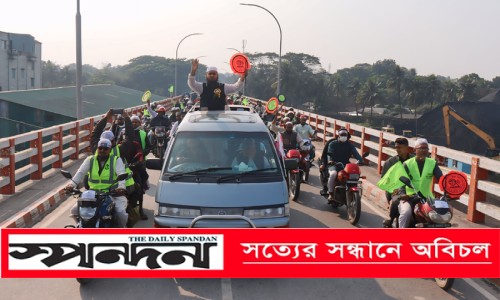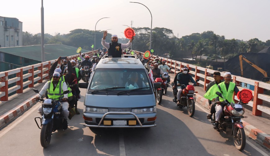 অভয়নগর (যশোর) প্রতিনিধি: ত্রয়োদশ জাতীয় সংসদ নির্বাচনকে সামনে রেখে যশোর ৪ আসনে ইসলামী আন্দোলন বাংলাদেশের মনোনীত অ্যাড. মাওলানা বাইজিদ হোসাইনের সমর্থনে মোটরসাইকেল শোভাযাত্রা অনুষ্ঠিত হয়েছে। শনিবার সকালে অভয়নগর উপজেলার প্রেমবাগ ইউনিয়ন থেকে শোভাযাত্রা শুরু হয়। দিনব্যাপী শোভাযাত্রাটি নির্বাচনী এলাকার বিভিন্ন গুরুত্বপূর্ণ সড়ক প্রদক্ষিণ করে সিদ্ধিপাশা ইউনিয়নে গিয়ে শেষ হয়। এতে হাজারো নেতাকর্মী মোটরসাইকেল নিয়ে অংশগ্রহণ করেন, যা পুরো এলাকায় উৎসবমুখর পরিবেশ সৃষ্টি করে। শোভাযাত্রার আগে শ্রীধরপুর ইউনিয়নে এক সংক্ষিপ্ত পথসভা অনুষ্ঠিত হয়।
