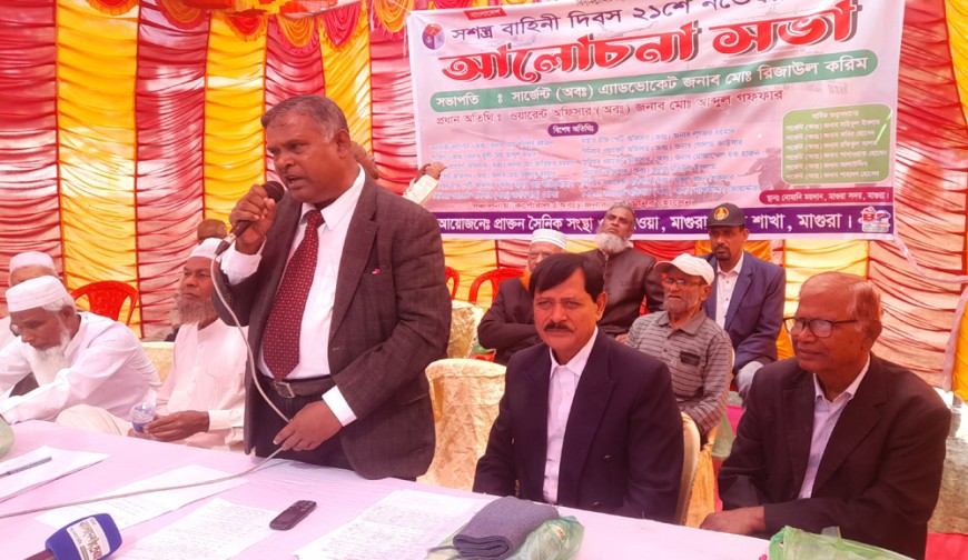 মাগুরা প্রতিনিধি : মাগুরায় প্রাক্তন সেনাদের উদ্যোগে সশস্ত্র বাহিনী দিবস পালিত হয়েছে। প্রাক্তন সৈনিক সংস্থা মাগুরা শাখা দিবসটি পালন উপলক্ষে মাগুরা নোমানী ময়দানে শুক্রবার সকালে এক আলোচনা সভার আয়োজন করে। সভায় সভাপতিত্ব করেন অবসর প্রাপ্ত সার্জেন্ট অ্যাডভোকেট রেজাউল করীম। সভায় প্রধান অতিথি হিসেবে বক্তব্য রাখেন অবসরপ্রাপ্ত ওয়ারেন্ট অফিসার আব্দুল গফফার। বিশেষ অতিথি ছিলেন অবসরপ্রাপ্ত অনারারী ক্যাপ্টেন খলিরুর রহমান, মাস্টার চীফ পেটি অফিসার লুৎফর রহমান, অবসরপ্রাপ্ত সার্জেন্ট আবদুল মান্নান, অবসরপ্রাপ্ত ওয়ারেন্ট অফিসার আতিয়ার রহমান, মিজানুর রহমান প্রমুখ। বক্তারা তাদের বক্তব্যে অবসর জীবনে নানান সমস্যা তুলে ধরে সমস্যা নিরুপন করে সমাধানের জন্য সেনা বাহিনীর কর্মকর্তাদের নিকট আহবান জানান। সভায় মাগুরা জেলার শতাধিক অবসরপ্রাপ্ত সৈনিকবৃন্দ উপস্থিত ছিলেন।