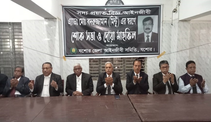 দুপুরে যশোর জেলা আইনজীবী সমিতির উদ্যোগে প্রয়াত বদরুজ্জামান মিন্টু স্মরণে সভা ও দোয়া মাহফিল অনুষ্ঠিত হয়েছে। সমিতির ১ নম্বর ভবন মিলনায়তনে অনুষ্ঠিত স্মরণ সভায় সভাপতিত্ব করেন আইনজীবী সমিতির সভাপতি আবু মোর্তজা ছোট।
