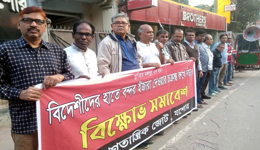 নিজস্ব প্রতিবেদক : দেশের বন্দর ও টার্মিনাল বিদেশীদের কাছে লিজ দেয়ার প্রতিবাদে বাম গণতান্ত্রিক জোট যশোরের উদ্যোগে বিক্ষোভ সমাবেশ অনুষ্ঠিত হয়েছে। রোববার বিকেলে প্রেসক্লাব যশোরের সামনে অনুষ্ঠিত বিক্ষোভ সমাবেশে সভাপতিত্ব করেন বাম গণতান্ত্রিক জোট যশোর জেলার আহ্বায়ক বাসদ নেতা হাসিনুর রহমান।
