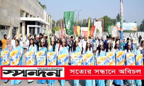 দিবসটি উপলক্ষে সকাল ১০টায় বিশ্ববিদ্যালয়ের মেইন গেট ‘শহিদ মীর মুগ্ধ তোরণ’ থেকে বর্ণাঢ্য শোভাযাত্রা বের করা হয়। শোভাযাত্রাটি দ্বিতীয় গেট ঘুরে অদম্য বাংলা চত্বরে গিয়ে শেষ হয়। শোভাযাত্রায় খুলনা বিশ্ববিদ্যালয়ের প্রথম উপাচার্য প্রফেসর ড. মোঃ গোলাম রহমান এর নেতৃত্বে বর্তমান উপাচার্য প্রফেসর ড. মোঃ রেজাউল করিম, উপউপাচার্য প্রফেসর ড. মোঃ হারুনর রশীদ খান, ট্রেজারার প্রফেসর ড. মোঃ নূরুন্নবী এবং বিভিন্ন স্কুলের ডিন, রেজিস্ট্রার (ভারপ্রাপ্ত), ডিসিপ্লিন প্রধান, ছাত্র বিষয়ক পরিচালক, প্রভোস্ট, বিভাগীয় পরিচালকসহ শিক্ষক-শিক্ষার্থী ও কর্মকর্তা-কর্মচারীবৃন্দ অংশগ্রহণ করেন।