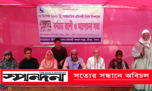 শ্রীপুর (মাগুরা) প্রতিনিধি : মাগুরার শ্রীপুরে আন্তর্জাতিক প্রতিবন্ধী দিবস উপলক্ষে র্যালি ও আলোচনা সভা অনুষ্ঠিত হয়েছে। বুধবার সকালে শ্রীপুর উপজেলা প্রতিবন্ধী কল্যাণ সংস্থার আয়োজনে কবি কাজী কাদের নওয়াজের বাসভবনের সামনে এ উপলক্ষে র্যালি ও আলোচনা সভা অনুষ্ঠিত হয়।