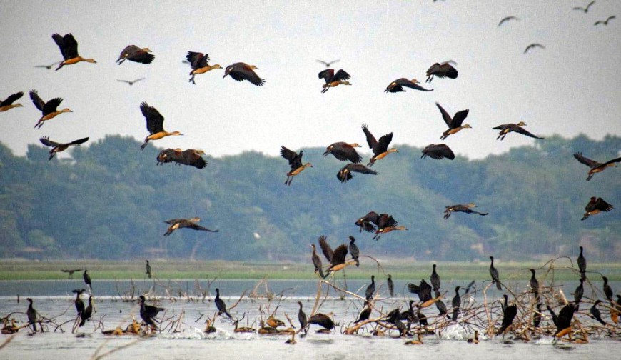 শীত এলেই প্রতি বছরের মতো এবারও ঝাঁকে ঝাঁকে অতিথি পাখির আগমন ঘটেছে ঘোপ বাঁওড়ে। বিশাল জলাশয়ের বুকজুড়ে পাখিদের উড়াউড়ি, ডুবসাঁতার আর আহার সংগ্রহের মনোমুগ্ধকর দৃশ্য আকৃষ্ট করছে দর্শনার্থীদের। কেউ পানিতে ডুব দিয়ে খাদ্য শিকার করছে, আবার কেউ কচুরিপানার ওপর বসে নিচ্ছে অবসর। সূর্যোদয় থেকে সূর্যাস্ত পর্যন্ত চলে তাদের খাদ্য সংগ্রহ ও খেলাধুলার মতো ব্যস্ততা।