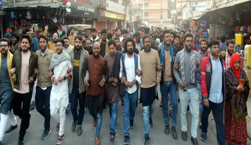 নিজস্ব প্রতিবেদক : ঢাকা-৮ আসনের এমপি প্রার্থী ও ইনকিলাব মঞ্চের মুখপাত্র শরীফ ওসমান হাদীর ওপর হামলার প্রতিবাদে যশোরে বিক্ষোভ মিছিল ও সমাবেশ হয়েছে। শুক্রবার বিকালে গণঅভ্যুথানে অংশ নেয়া ছাত্র জনতার ব্যানারে শহরের টাউন হল ময়দান থেকে মিছিলটি বের হয়। মিছিলটি শহরের মাইকপট্টি হয়ে চৌরাস্তা ঘুরে দড়াটানা ভৈরব চত্বরে এসে সংক্ষিপ্ত সমাবেশের মধ্যে দিয়ে শেষ হয়।