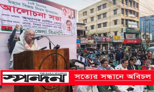 মহান বিজয় দিবস উপলক্ষে যশোর জেলা বিএনপি আয়োজিত আলোচনা সভায় প্রধান অতিথির বক্তব্য রাখেন তিনি। চৌরাস্তা মোড়ে অনুষ্ঠিত আলোচনা সভার শুরুতে অধ্যাপক নার্গিস বেগম মহান স্বাধীনতার ঘোষক শহীদ রাষ্ট্রপতি জিয়াউর রহমানসহ স্বাধীনতা যুদ্ধ, চব্বিশের গণঅভ্যুত্থানসহ সকল গণতান্ত্রিক আন্দোলনে নিহতের গভীর শ্রদ্ধাভরে স্মরণ ও তাদের বিদেহী আত্মার মাগফিরাত কামনা করেন। আলোচনা সভায় প্রধান অতিথির বক্তব্য রাখেন, বিএনপির ভারপ্রাপ্ত সাংগঠনিক সম্পাদক (খুলনা বিভাগ) এবং ত্রয়োদশ জাতীয় সংসদ নির্বাচনে যশোর-৩ ( সদর ) আসনে ধানের শীষ মনোনীত প্রার্থী অনিন্দ্য ইসলাম অমিত।