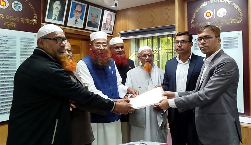 ফরহাদ খান, নড়াইল : ত্রয়োদশ জাতীয় সংসদ নির্বাচন উপলক্ষে নড়াইল-১ আসনে (কালিয়া উপজেলা ও সদরের আংশিক) ইসলামী আন্দোলনের মনোনীত প্রার্থী মাওলানা আব্দুল আজিজ এবং নড়াইল-২ আসনের (লোহাগড়া উপজেলা ও সদরের আংশিক) প্রার্থী অধ্যক্ষ মাওলানা তাজুল ইসলাম মনোনয়নপত্র সংগ্রহ করেছেন।