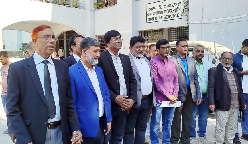 ফরহাদ খান, নড়াইল : ত্রয়োদশ জাতীয় সংসদ নির্বাচন উপলক্ষে নড়াইল-১ আসনে (কালিয়া উপজেলা ও সদরের আংশিক) বিএনপি মনোনীত প্রার্থী বিশ্বাস জাহাঙ্গীর আলমের পক্ষে মনোনয়নপত্র সংগ্রহ করা হয়েছে। বৃহস্পতিবার (১৮ ডিসেম্বর) দুপুরে জেলা রিটার্নিং অফিসার জেলা প্রশাসক ড. মোহাম্মদ আবদুল ছালামের নিকট থেকে মনোনয়নপত্র সংগ্রহ করেন দলীয় নেতাকর্মীরা।