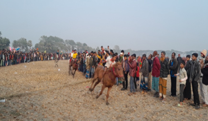মাগুরা প্রতিনিধি : মাগুরা সদরের মঘীর মাঠে শনিবার বিকালে হয়ে গেল ঐতিহ্যবাহী ঘোড়দৌড় প্রতিযোগিতা। এ উপলক্ষে মঘীর মাঠ প্রাঙ্গণে দুই দিনব্যাপী মেলার আয়োজন করা হয়। ঐতিহ্যবাহী এ মেলা দেখতে মঘী ইউনিয়নের পার্শ্ববর্তী ১০ গ্রামের হাজার হাজার মানুষ ভিড় করে মাঠে। বিকাল থেকে শুরু হয় ঘোড়দৌড় প্রতিযোগিতা। একে একে পাঁচবার হয় এ ঘোড় দৌড়। গ্রাম বাংলার ঐতিহ্যবাহী এ ঘোড় দৌড় দেখতে মঘী মাঠে দুপুরের পর থেকেই ভিড় করে হাজার হাজার নারী,পুরুষ,শিশু, কিশোর, যুবক-যুবতী, নানা বয়সী মানুষ। সত্যপুর গ্রামের ইউসুফ আলী জানান, প্রতিবছর হেমন্তের ধান কাটা শেষে মঘীর এ মাঠে ঘোড় দৌড় প্রতিযোগিতা হয়ে থাকে। আমরা গ্রামের মানুষেরা একটু আনন্দ পেতে এ ঘোড় প্রতিযোগিতা দেখে থাকি । এখানে আমাদের পরিবারের ছেলেমেয়েরা আনন্দ উৎসব করে। মঘী গ্রামের ওয়াজেদ আলী বলেন- দীর্ঘ ২২ বছর ধরে মঘীর এ মাঠে ঘোর দৌড় প্রতিযোগিতা হয়ে আসছে। শুধু ঘোড় তোর নয় এখানে দুইদিন ব্যাপী বসে মেলা। এ মেলায় পাওয়া যায় হারেক রকম জিনিস। নানা বয়সী ছেলেমেয়েরা এই মেলায় কেনাকাটা করে। পার্শ্ববর্তী বিভিন্ন গ্রামের মানুষ আসে এই মেলায়। মেলার আয়োজক কমিটির অন্যতম সদস্য খায়রুজ্জামান সবুজ জানান, প্রতি বছর ধান কাটার পরে মঘী মাঠে ঐতিহ্যবাহী ঘোড় দৌড়,বিচার গান,মঞ্চ নাটক ও ও সাংস্কৃতিক অনুষ্ঠান পরিবেশিত হয়। এ বারের আয়োজনে কোন ব্যতিক্রম ঘটেনি। এবার মেলা হবে দুইদিন। মেলাকে ঘিরে নানা দোকানীরা তাদের পরসা সাজিয়ে বসেছে মাঠে । এবার ঘোড়দৌড় প্রতিযোগিতায় জেলা ও জেলার বাইরে ২১ টি ঘোড়া অংশ নেয়। ঐতিহ্যবাহী মঘী ৩১ তম এ ঘোড় দৌড় ও আনন্দমেলার প্রধান অতিথি ছিলেন মাগুরা জেলা বিএনপি’র আহ্বায়ক আলি আহমদ। মেলার উদ্বোধক ছিলেন জেলা বিএনপি’র সদস্য সচিব মনোয়ার হোসেন খান। বিশেষ অতিথি ছিলেন মঘী ইউনিয়নের সাবেক সভাপতি আলতাফ হোসেন বিশ্বাস, সাবেক সাধারণ সম্পাদক খায়রুজ্জামান সবুজ। অনুষ্ঠানের সভাপতি করেন মো: জাহিদুল ইসলাম। মঘী এলাকাবাসীর আয়োজনে মেলার সমাপনী হবে রবিবার।