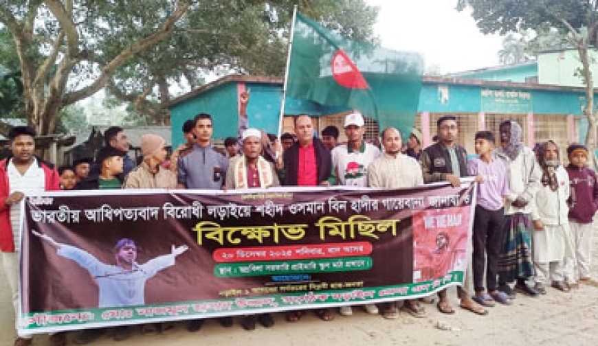 ফরহাদ খান, নড়াইল: ইনকিলাব মঞ্চের মুখপাত্র শহীদ শরিফ ওসমান হাদির গায়েবানা জানাজা অনুষ্ঠিত হয়েছে। নড়াইল-১ আসনের সর্বস্তরের বিপ্লবী ছাত্র-জনতার আয়োজনে শনিবার (২০ ডিসেম্বর) বিকেলে সদরের ভদ্রবিলা সরকারি প্রাথমিক বিদ্যালয় মাঠে হাদির গায়েবানা জানাজা অনুষ্ঠিত হয়। নামাজে ইমামতি করেন-মাওলানা কাজী কামরুল হাসান। পরে হাদির খুনিদের দ্রুত গ্রেফতার ও বিচার দাবিতে বিক্ষোভ মিছিল অনুষ্ঠিত হয়। এ সময় উপস্থিত ছিলেন-নড়াইল জেলা এনসিপির সংগঠক নাজমুল হাসান উজ্জ্বল, জুলাইযোদ্ধা শফিকুল ইসলাম, নূর ইসলাম, মোহাম্মদ আশিক, হাসিব, এনামুল শেখসহ অনেকে। বক্তারা বলেন, ইনকিলাব মঞ্চের মুখপাত্র শহীদ শরিফ ওসমান হাদির খুনিরা সত্যি কী পালিয়ে গেছে। যদি পালিয়ে যেতে না পারে তাহলে দ্রুত আইন-শৃঙ্খলাবাহিনীর সদস্যরা তাদের গ্রেফতার করবেন। আর একজন হাদিকে হত্যা করে জুলাইয়ের চেতনাকে ধ্বংস করা যাবে না। এক হাদি লোকান্তরের গেলেও লক্ষ লক্ষ হাদি প্রতিটি ঘরে ঘরে প্রস্তুত রয়েছে।