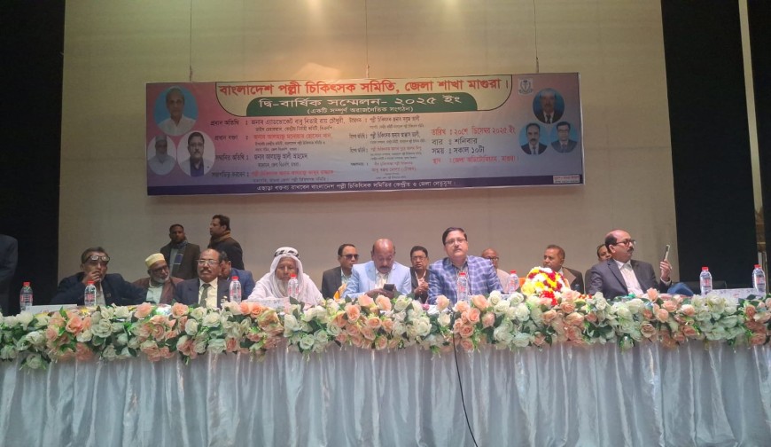 মাগুরা প্রতিনিধি : বাংলাদেশ পল্লী চিকিৎসক সমিতি, জেলা শাখা মাগুরার উদ্যোগে দ্বি-বার্ষিক সম্মেলন শনিবার সকাল ১০টায় মাগুরা জেলা অডিটোরিয়ামে সম্মেলন অনুষ্ঠিত হয়েছে। সম্মেলনে প্রধান অতিথি ছিলেন অ্যাডভোকেট বাবু নিতাই রায় চৌধুরী, ভাইস চেয়ারম্যান, কেন্দ্রীয় নির্বাহী কমিটি, বিএনপি। প্রধান বক্তা ছিলেন মনোয়ার হোসেন খান, উপদেষ্টা, কেন্দ্রীয় কমিটি, বাংলাদেশ পল্লী চিকিৎসক সমিতি ও সদস্য সচিব, জেলা বিএনপি মাগুরা। সম্মেলনে সভাপতিত্ব করেন পল্লী চিকিৎসক আলহাজ্ব আব্দুর রাজ্জাক, সভাপতি, মাগুরা জেলা পল্লী চিকিৎসক সমিতি। উদ্বোধক ছিলেন ছিলেন পল্লী চিকিৎসক সবুজ আলী, সভাপতি, কেন্দ্রীয় কমিটি, বাংলাদেশ পল্লী চিকিৎসক সমিতি। বিশেষ অতিথি হিসেবে বক্তব্য রাখেন পল্লী চিকিৎসক আক্কাস আলী, সাধারণ সম্পাদক, কেন্দ্রীয় কমিটি এবং পল্লী চিকিৎসক নূরে আলম দিপু, সহ-সাধারণ সম্পাদক, কেন্দ্রীয় কমিটি ও সাধারণ সম্পাদক, খুলনা বিভাগ। সম্মেলনের সঞ্চালনায় ছিলেন বীর মুক্তিযোদ্ধা পল্লী চিকিৎসক আবু বক্কার মোল্যা (টোকন), সাধারণ সম্পাদক, মাগুরা জেলা পল্লী চিকিৎসক সমিতি। সম্মেলনে বক্তারা পল্লী চিকিৎসকদের অধিকার রক্ষা, দক্ষতা উন্নয়ন, সংগঠনের সাংগঠনিক কার্যক্রম জোরদার এবং ভবিষ্যৎ কর্মপরিকল্পনা নিয়ে বিস্তারিত আলোচনা করেন। সম্মেলনে আংশিক নতুন জেলা কমিটি ঘোষণা করা হয়।