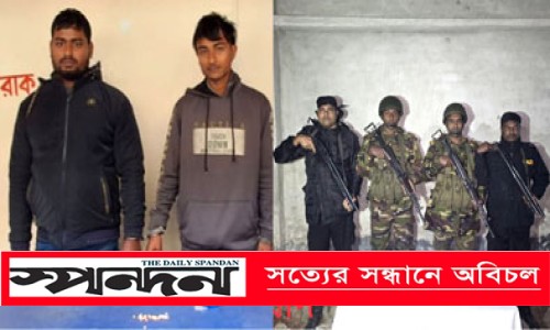 কালীগঞ্জ (ঝিনাইদহ) প্রতিনিধি: ঝিনাইদহের কালীগঞ্জে আলাদা দু’টি অভিযানে বন্দুক, ককটেল ও মাদক উদ্ধার হয়েছে। বুধবার দিবাগত রাতে যৌথবাহিনীর অভিযানে উপজেলার জামাল ইউনিয়নের উল্লা গ্রাম থেকে একটি বন্দুক ও দুটি ককটেল উদ্ধার এবং বালিয়াডাঙ্গা গ্রাম থেকে ২৬ পিস ইয়াবাসহ দুই মাদক ব্যবসায়ীকে আটক করা হয়। এ ঘটনায় কালীগঞ্জ থানায় দুটি মামলা হয়েছে। পুলিশ জানায়, গোপন সংবাদের ভিত্তিতে সেনা ও র্যাবসহ যৌথ বাহিনীর সদস্যরা উপজেলার জামাল ইউনিয়নের উল্লা গ্রামে অভিযান চালায়। এ সময় ওই গ্রামের বদিউজ্জামান রাজার মেহগিনি বাগান থেকে পরিত্যক্ত অবস্থায় একটি দেশিয় একনলা বন্দুক ও দুইটি ককটেল উদ্ধার করে। অপরদিকে সন্ধ্যায় থানা পুলিশ উপজেলার বালিয়াডাঙ্গা গ্রামের অভিযান চালিয়ে ২৬ পিস ইয়াবাসহ সজীব হোসেন (২৮) ও তানভীর উদ্দিন (২১) নামে দুই মাদক ব্যবসায়ীকে গ্রেফতার করে। কালীগঞ্জ থানার অফিসার ইনচার্জ (ওসি) জেল্লাল হোসেন জানান, গ্রেফতারকৃতদের বিরুদ্ধে মাদকদ্রব্য আইন এবং অস্ত্র্র আইনে দুটি মামলা করা হয়েছে।