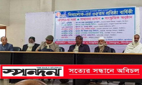 শৈলকুপা (ঝিনাইদহ) প্রতিনিধি : ঝিনাইদহের শৈলকুপায় সাংস্কৃতিক সংগঠন দিবালোকের ৩৫তম প্রতিষ্ঠাবার্ষিকীতে আলোচনাসভা, গুণীজন সম্মাননা ও সাংস্কৃতিক অনুষ্ঠানের আয়োজন করা হয়। বৃহস্পতিবার বিকালে উপজেলা পরিষদ মিলনায়তনে দিবালোকের প্রতিষ্ঠাতা সভাপতি দীরাজ মাহমুদ এর সভাপতিত্বে এবং সাধারণ সম্পাদক মিরাজ হোসেনের সঞ্চালনায় আলোচনা অনুষ্ঠানে অতিথি হিসেবে উপস্থিত ছিলেন কবি সিরাজ উদ্দীন বিশ্বাস। মূখ্য আলোচক হিসেবে উপস্থিত ছিলেন ইসলামী বিশ্ববিদ্যালয়ের বাংলাবিভাগের অধ্যাপক ড. তপন রায়। অনুষ্ঠানে শৈলকুপার ৪ জন গুণী সাংস্কৃতিক ব্যক্তিত্বকে সম্মাননা প্রদান করা হয়। এরা হলেন মো. ফরিদ রেজা (যাত্রা শিল্পী), বিজন চন্দ্র বিশ্বাস (যাত্রা শিল্পী), খন্দকার খসরুজ্জামান বাবু (নাট্য শিল্পী) ও মানিক জোয়ার্দার (সংগীত শিল্পী)। পরে সংগঠনের শিল্পীদের পরিবেশনায় মনোজ্ঞ সাংস্কৃতিক অনুষ্ঠান পরিবেশিত হয়।